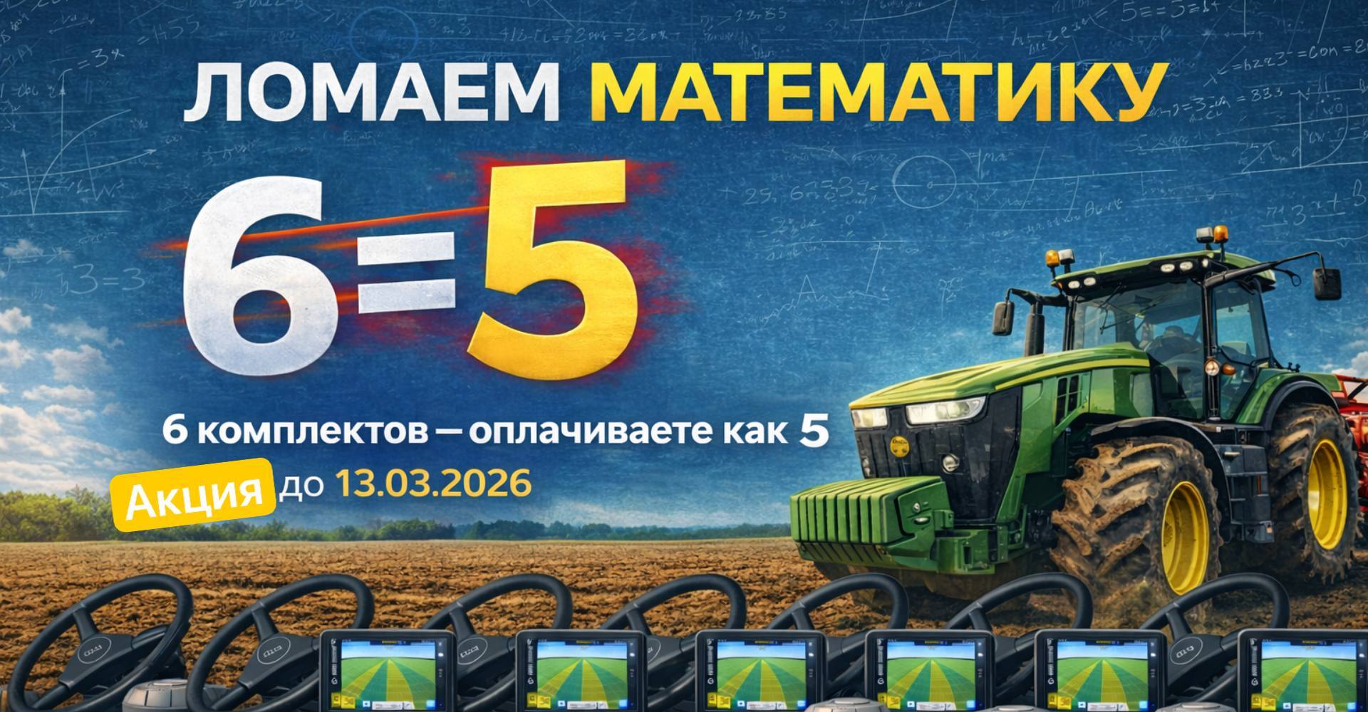 Маркетплейс Верум Агро совместно с партнером Агротех-К предлагает уникальную возможность оснастить свой парк техники современными системами автовождения с максимальной выгодой. При заказе до 13 марта 2026 года на Верум Агро вы получаете существенную экономию: закажите 6 комплектов навигации, а оплатите только 5! Один комплект достается вам абсолютно бесплатно.