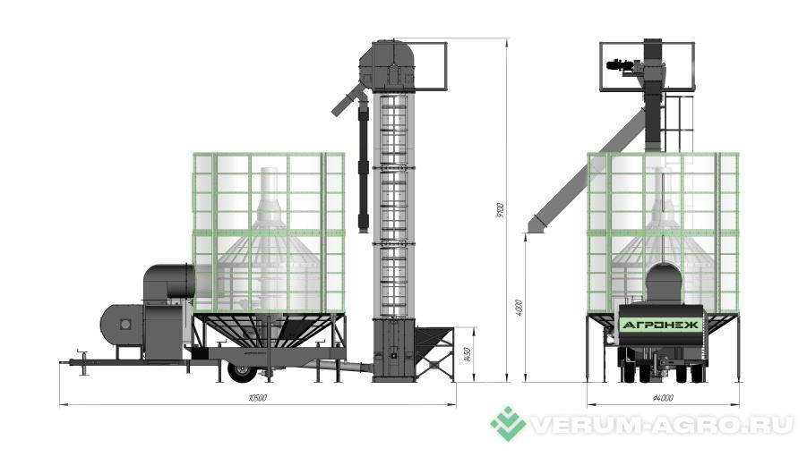 Бюджетная, доступная даже маленьких фермерским хозяйствам мобильная зерносушилка циклического типа AGRONEZH модель М40 с V бункера 46 м3.