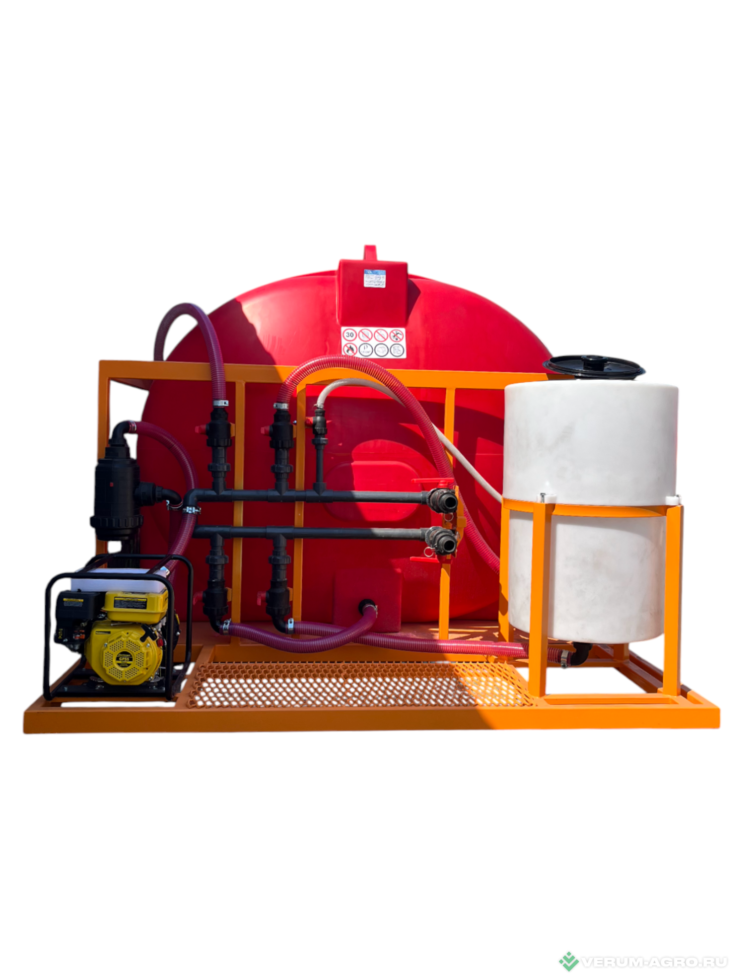 - Химостойкой бензиновой мотопомпы производительностью 550 л/мин и системой кранов, обеспечивающих приготовление маточного раствора;
