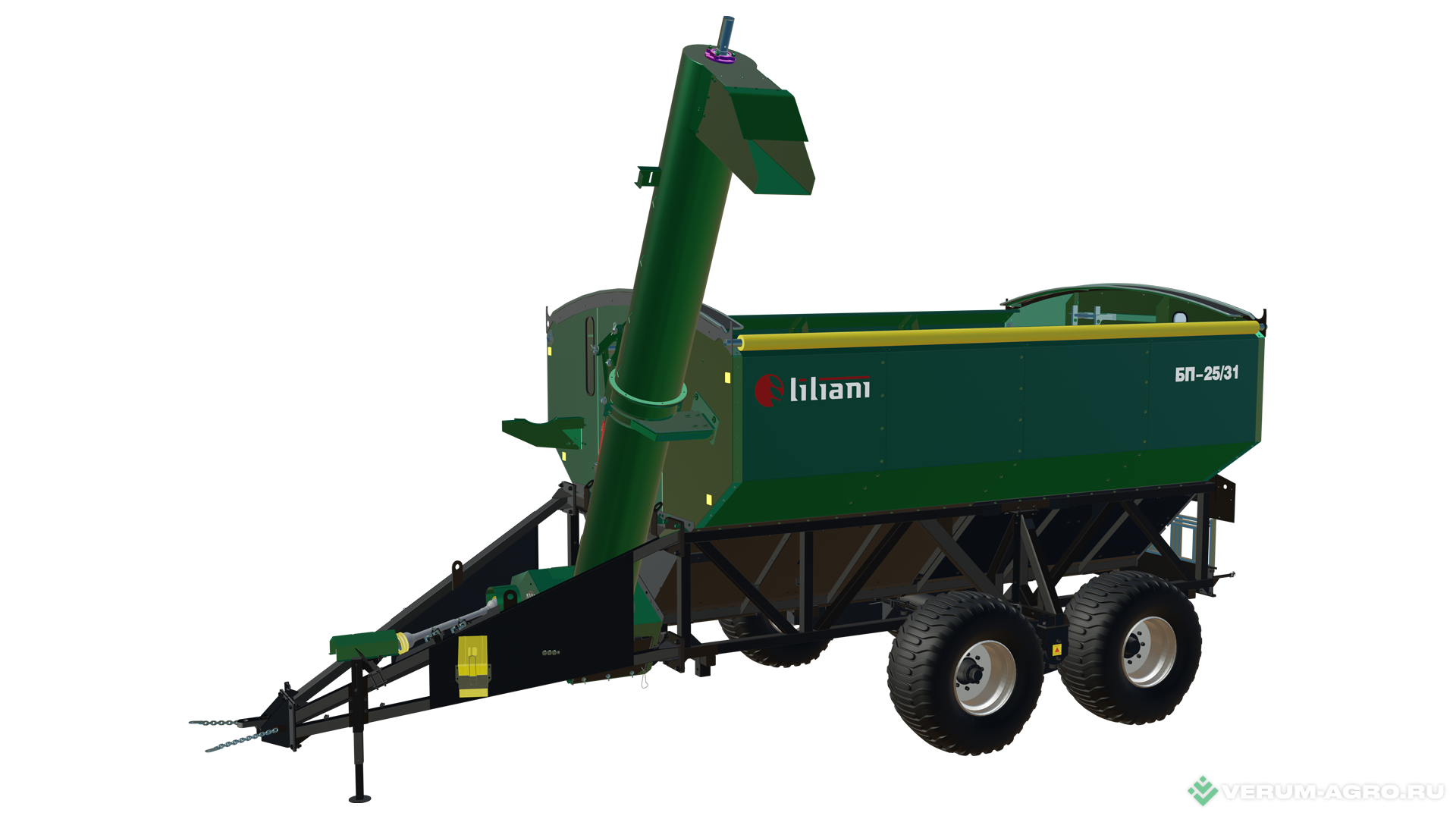 Бункер перегрузчик зерна шнековый прицепной БП-25/31 ЛИЛИАНИ - высокая производительность с большим объемом перегрузки зерна, оптимальное соотношение "цена/качество", один из флагманов наших продаж. Грузоподъемность в 25 тонн совпадает с востребованной грузоподъемностью грузовиков-зерновозов и хорошо соотносится с кратностью емкости приемных бункеров большинства популярных комбайнов.