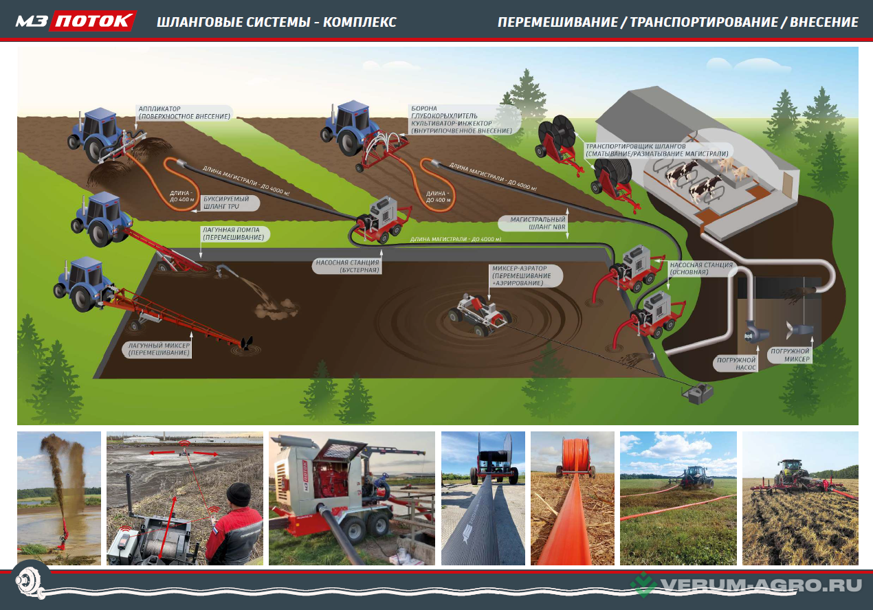 Полный комплекс гидромеханического оборудования для перемешивания, транспортирования и внесения на поля больших объемов жидких органических удобрений (навоза) на сельскохозяйственных землях для производства растениеводческой продукции: