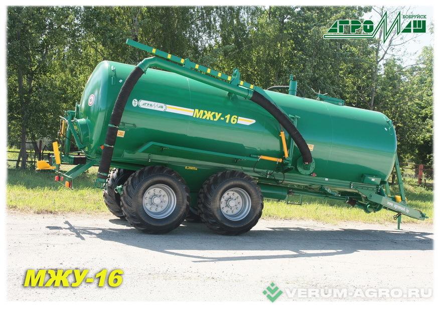 Машина для внесения жидких органических удобрений МЖУ-16 предназначена для самозагрузки, транспортирования, перемешивания и сплошного поверхностного распределения жидких органических удобрений, а также для перевозки технической воды. По заказу может оснащаться приспособлением для подключения к выливному патрубку пожарного рукава. Внесение удобрений производится при помощи центробежного насоса и разливочного устройства.