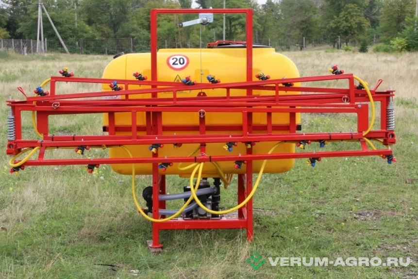 КомплектацияВ стандартной комплектации штанговый опрыскиватель имеет: • Резервуар на 1000 литров • Отдельный бачок для мытья рук • Насос (производительность 80-140 литров в минуту) • Регулятор давления • Система стабилизации «ГОРИЗОНТ» для ш