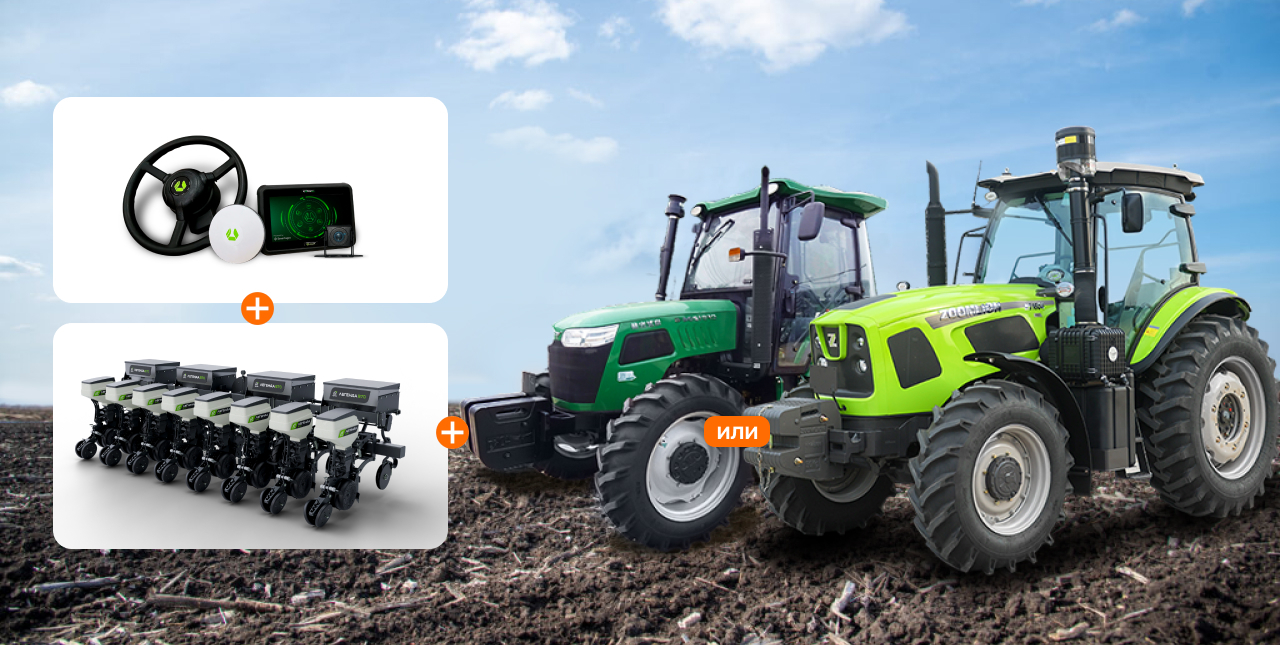 Мы предлагаем именно такое решение — сразу комплектом: трактор + сеялка + автопилот — по очень выгодной цене.