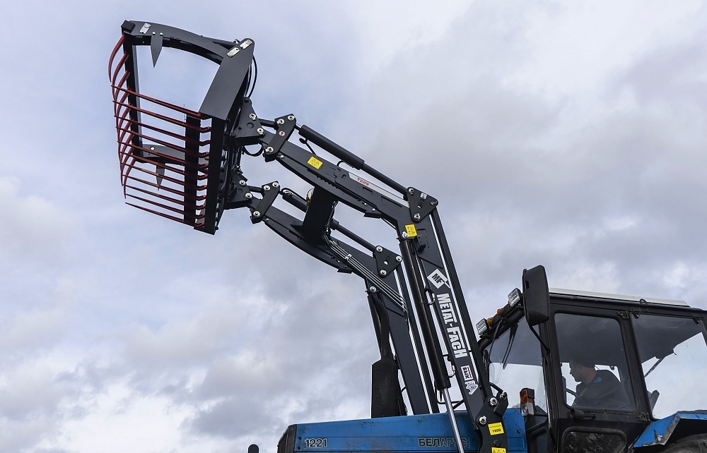 Быстрая смена навесного и подготовка к работе. Оптимальная грузоподъёмность 1100 кг достигается на заводских настройках давления гидросистемы трактора 16–18 МПа (160–180 бар). Высота до оси вращения навесного рабочего органа — 3570 мм.