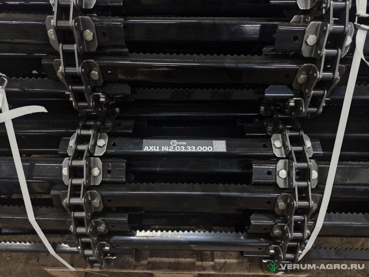 Компания "Прайм" производит транспортёры наклонной камеры на комбайны Ростсельмаш (Acros 585+ и 550), применяемые для подачи массы от жатки в молотильный барабан. Шаг цепи 38, 77 планок, на болтах М10, широкие ушки.